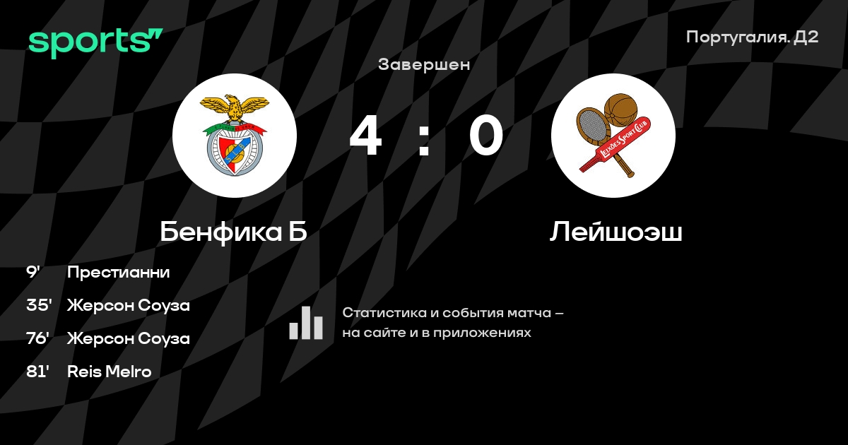 Андре Гомеш - Маркес, Сантуш, Тейшейра, Уайндер - Феликс, Луиш, Нуну Феликс - Гуштаву Варела, Престианни, Жерсон СоузаЗапасные: de Souza, Фонсека, Паренте, Спенсер, Велозу, Junior Okon-Engstler, Loussakou Souza, Луан, Reis Melro