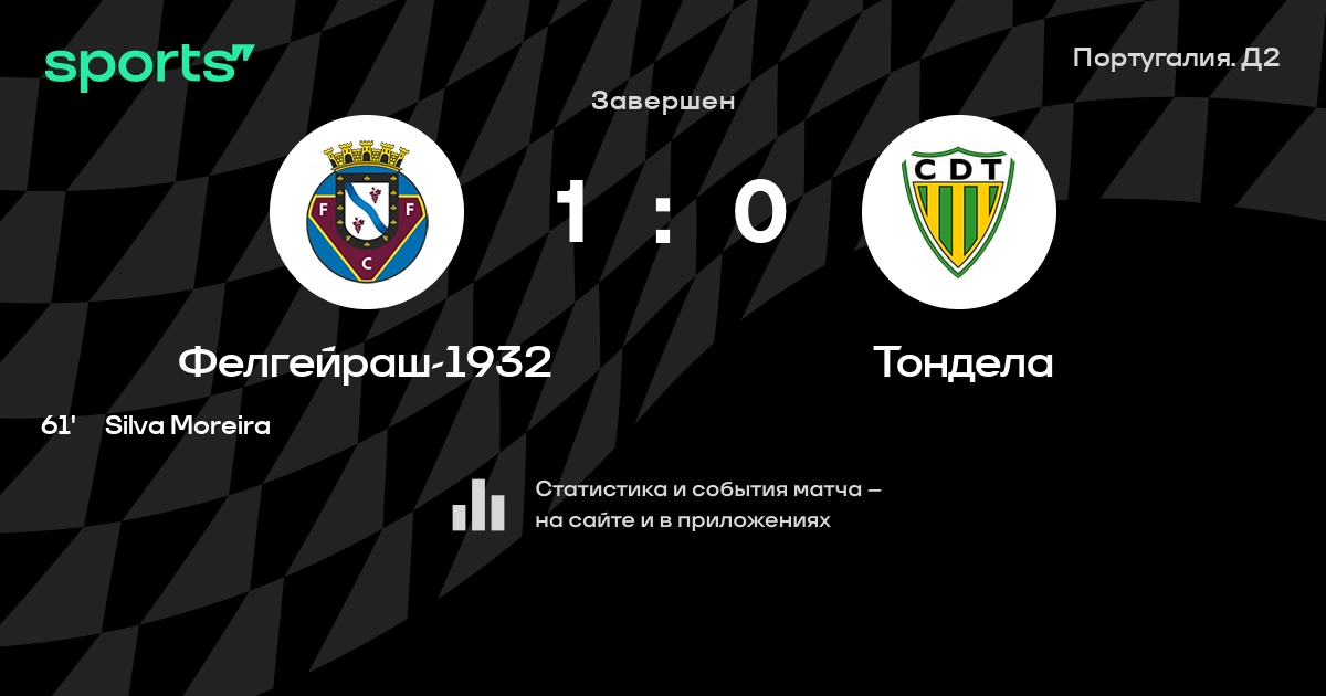 Результат прошлой игры в турнире «Сегунда»: Фейренсе – Фелгейраш-1932 3:2. После 20 туров Фелгейраш-1932 набирает 22 очков и занимает 15 место в турнире. Лучший бомбардир команды – Vasco Moreira: он забил 5 в 20 матчах. Фелгейраш-1932 проигрывает в 3 последних матчах в рамках турнира «Сегунда». Фелгейраш-1932 пропускает в 3 последних матчах в турнире «Сегунда». В последних 5 играх Фелгейраш-1932 забивает 8 голов. В последних 5 играх Фелгейраш-1932 пропускает 7 голов.
