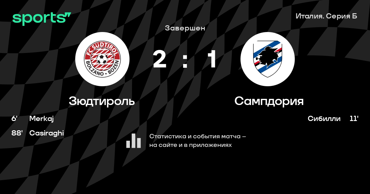 Сампдория играет вничью в 3 последних матчах в гостях в турнире «Серия B»