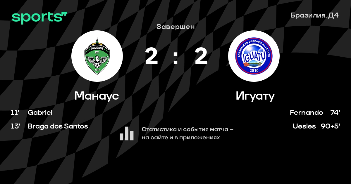 В последних 5 играх Манаус забивает в среднем 1.80 гола за игру