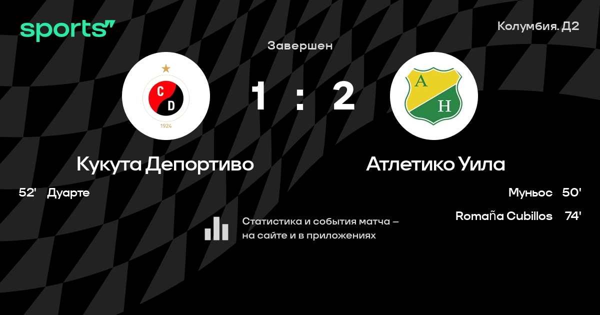 Результат прошлой игры в турнире «Примера Б»: Унион Магдалена – Кукута Депортиво 1:1. После 16 туров Кукута Депортиво набирает 32 очков и занимает 2 место в турнире. Лучший бомбардир команды – J. Angulo: он забил 6 в 24 матчах. Атлетико Уила имеет в активе больше всех побед в турнире – 13. В последних 5 играх Кукута Депортиво забивает 4 голов. В последних 5 играх Кукута Депортиво пропускает 4 голов.