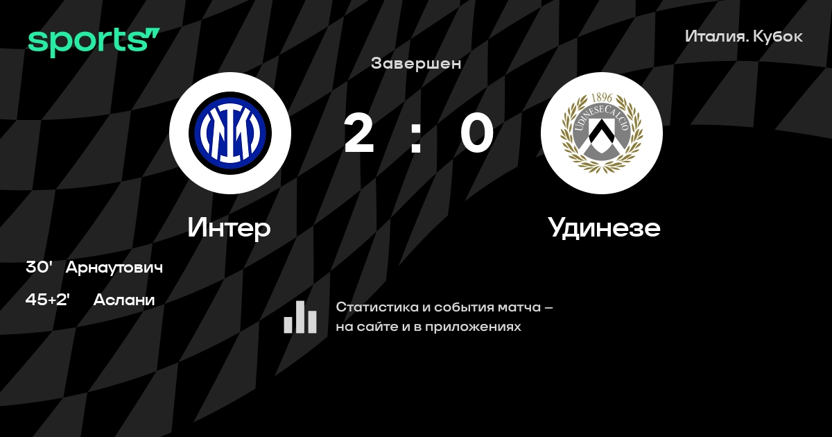 Жозеп Мартинес - Бастони, Биссек, Дармиан - Карлос Аугусто, Зелиньски, Аслани, Фраттези, Бьюкенен - Арнаутович, ТаремиЗапасные: Зоммер, Каллигарис, Думфрис, де Врей, Димарко, Паласиос, Айду, Чалханоглу, Мхитарян, Тюрам, Мартинес, Корреа