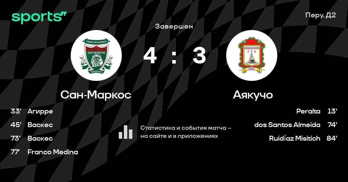 Luizao Lázaro Mayta Boza - Luis Ángel Rodríguez Flores, Cris Miliam Huyhua Durand, Barboza Vargas, César Abraham Simón Castillo, José María Ataupillco Portal - Jean Pier Vílchez Quispe, Adrián Eduardo De La Cruz Villalobos, Риос, Said Terry Peralta Yurivilca, Jime Rotson Tuesta Tapayuri - Запасные: Palomino Canchanya, dos Santos Almeida, Allca Calle, Delgado Vásquez, Ruidíaz Misitich, Zabala, Loayza Bautista