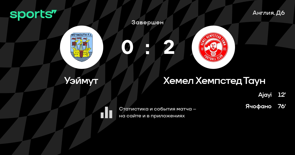 Уэймут – Хемел Хемпстед Таун: Хемел Хемпстед Таун не проигрывает в 5 из 6 последних матчей против этого соперника в гостях