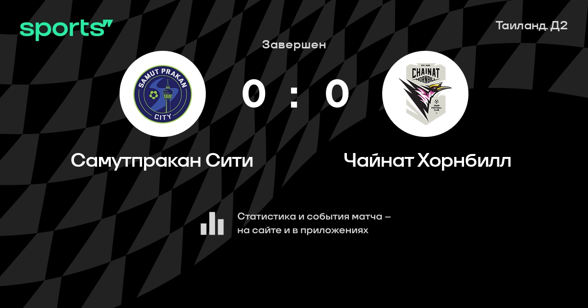 Результат прошлой игры в турнире «Лига 2»: Чайнат Хорнбилл – Kanchanaburi Power 2:2. После 3 туров Чайнат Хорнбилл набирает 5 очков и занимает 9 место в турнире. Лучший бомбардир команды – T. Jittabud: он забил 2 в 3 матчах. Чайнат Хорнбилл не проигрывает в 4 последних матчах в рамках турнира «Лига 2». В 4 последних матчах в турнире «Лига 2» Чайнат Хорнбилл обязательно забивает. Чайнат Хорнбилл пропускает в 6 последних матчах в турнире «Лига 2». В последних 5 играх Чайнат Хорнбилл забивает 8 голов. В последних 5 играх Чайнат Хорнбилл пропускает 7 голов.