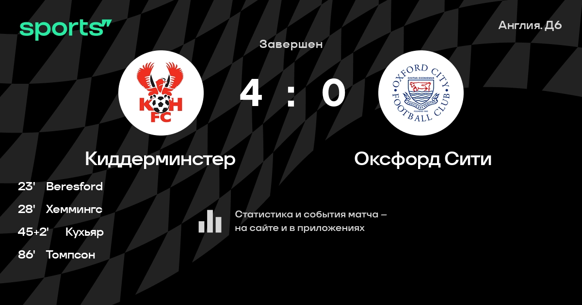 Киддерминстер – Оксфорд Сити: коэффициенты