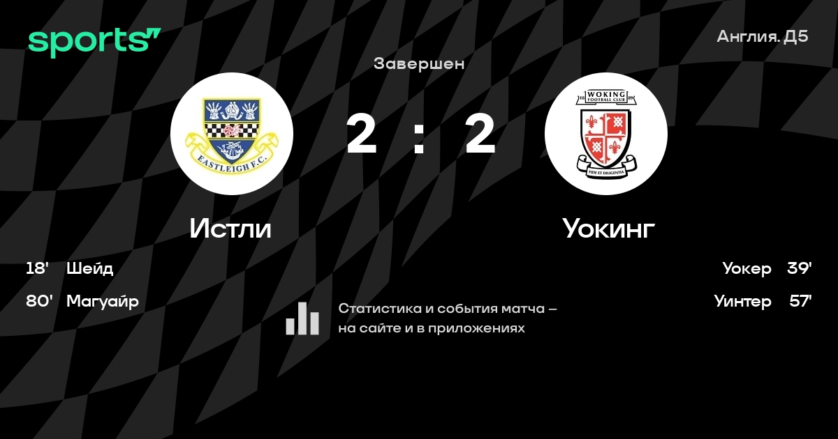 Результат прошлой игры в турнире «Д5. Национальная лига»: Файлд – Уокинг 1:1. После 10 туров Уокинг набирает 14 очков и занимает 12 место в турнире. Лучший бомбардир команды – C. Kendall: он забил 3 в 10 матчах. В 3 последних матчах в турнире «Д5. Национальная лига» Уокинг обязательно забивает. В последних 5 играх Уокинг забивает 3 голов. В последних 5 играх Уокинг пропускает 7 голов.