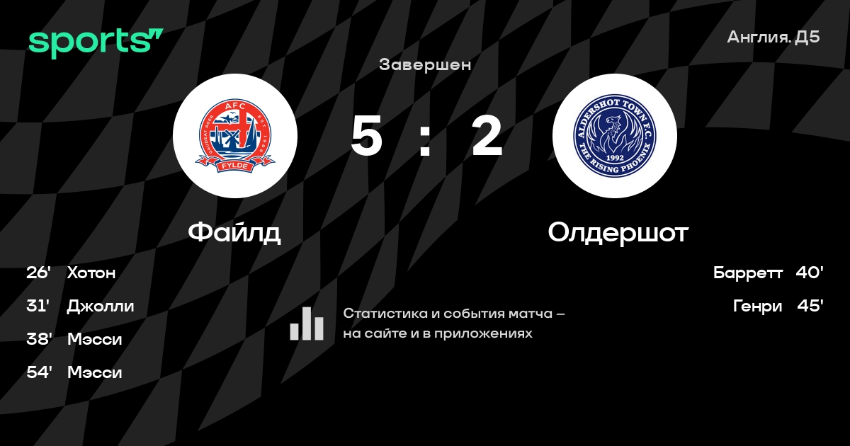 Результат прошлой игры в турнире «Д5. Национальная лига»: Барнет – Файлд 2:0. После 12 туров Файлд набирает 9 очков и занимает 22 место в турнире. Лучший бомбардир команды – Ник Хотон: он забил 10 в 12 матчах. Файлд не может выиграть в 3 последних матчах в рамках турнира «Д5. Национальная лига». Файлд пропускает в 8 последних матчах в турнире «Д5. Национальная лига». В последних 5 играх Файлд забивает 4 голов. В последних 5 играх Файлд пропускает 9 голов.
