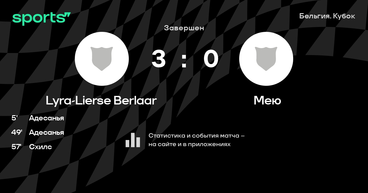 Mats Sterkens - Tomas Muyldermans, Volant, Versmissen - Августейнс, Vets, Схилс, Quinten Van Goylen, Kil - Пеффер, АдесаньяЗапасные: De Smet, Verelst, Teunen, Van Den Bogaert, Reijniers, Boulaouali Didouh, Ibn El Mokadem