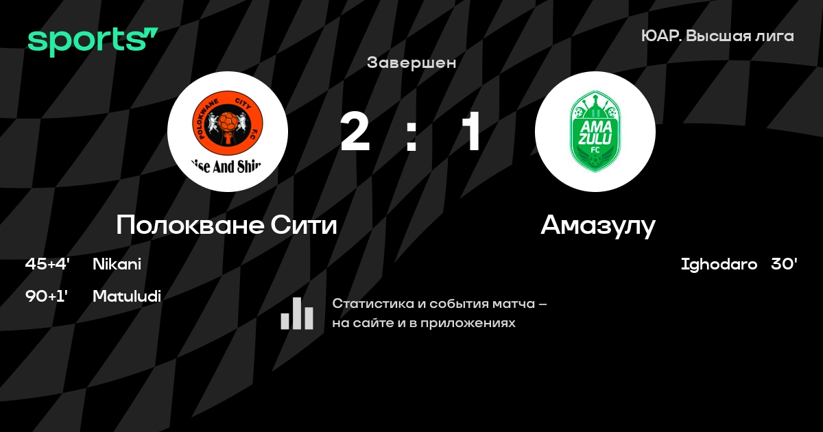 Мотва - Ханамуб, Fielies, Гумеде, Йосте - Ngema, Мотшвари, Хьюман, Etiosa Godspower Ighodaro, Mbanjwa - Junior DionЗапасные: Mzimela, Мнгоньяма, Мобара, Мфалеле, Нгобени, Brooks, Moremi, Муленга, Ndlovu