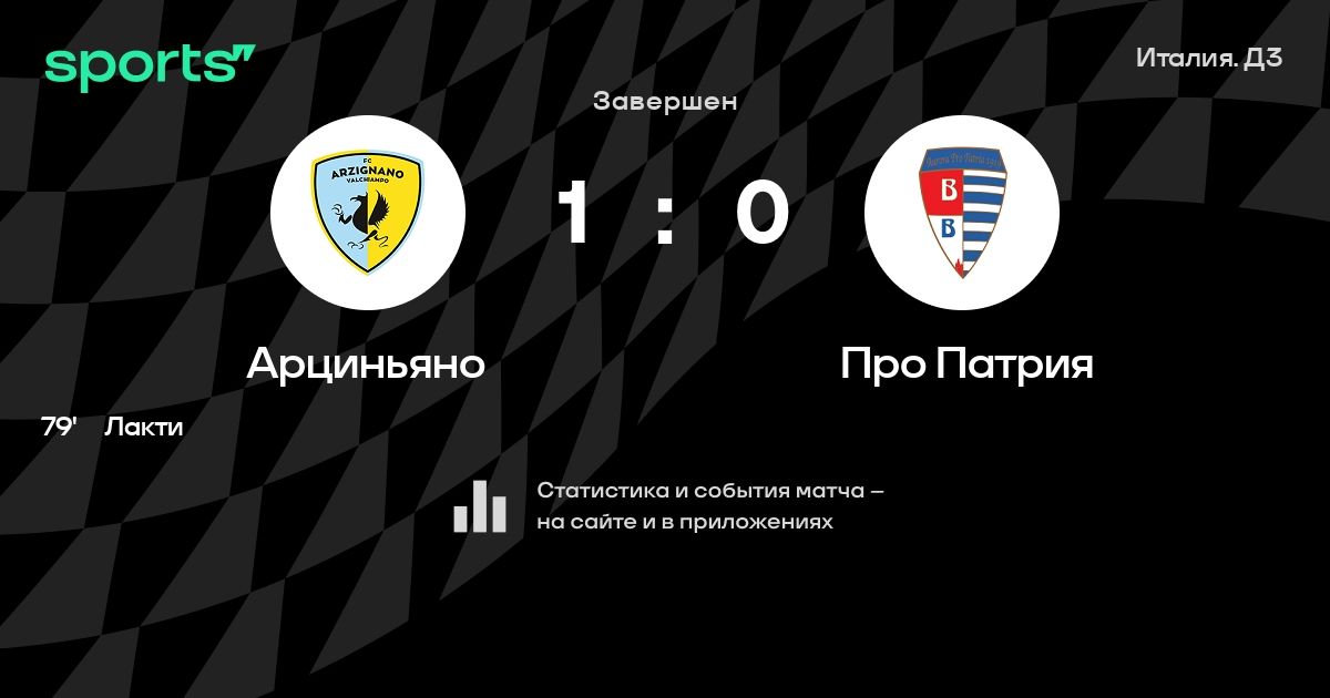 Результат прошлой игры в турнире «Серия С»: Про Патрия – Тренто 1:1. После 11 туров Про Патрия набирает 13 очков и занимает 13 место в турнире. Лучший бомбардир команды – Джакомо Беретта: он забил 2 в 5 матчах. Про Патрия не проигрывает в 7 последних матчах в рамках турнира «Серия С». В 6 последних матчах в турнире «Серия С» Про Патрия обязательно забивает. Про Патрия пропускает в 6 последних матчах в турнире «Серия С». В последних 5 играх Про Патрия забивает 7 голов. В последних 5 играх Про Патрия пропускает 5 голов.