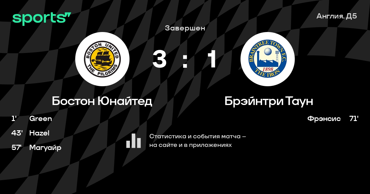 Трансляция Бостон Юнайтед - Брэйнтри Таун