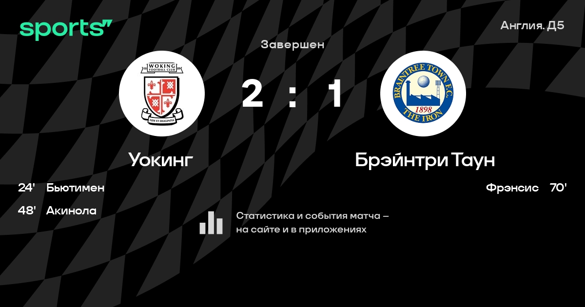Уокинг – Брэйнтри Таун: Уокинг забивает в 5 из 7 последних матчей против этого соперника