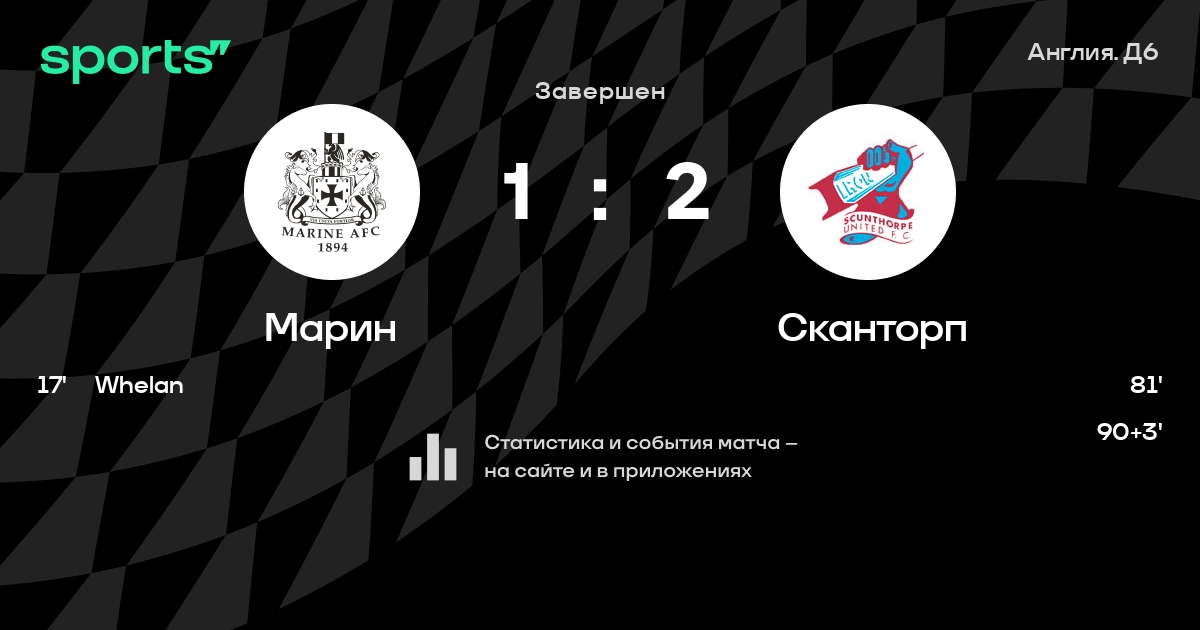 Результат прошлой игры в турнире «Д6. Национальная конференция»: Олфретон Таун – Марин 1:0. После 20 туров Марин набирает 18 очков и занимает 22 место в турнире. Лучший бомбардир команды – Брэдли Холмс: он забил 2 в 17 матчах. Марин не может выиграть в 3 последних матчах в рамках турнира «Д6. Национальная конференция». В последних 5 играх Марин забивает 5 голов. В последних 5 играх Марин пропускает 6 голов.