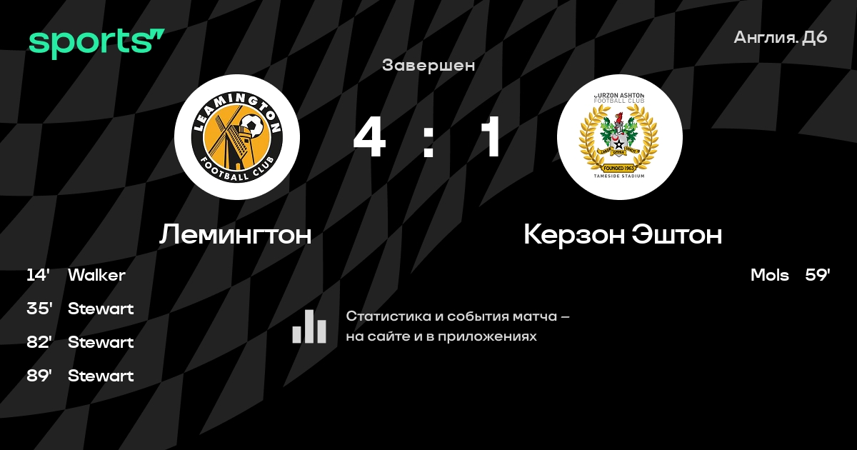 Результат прошлой игры в турнире «Д6. Национальная конференция»: Спеннимур Таун – Лемингтон 2:1. После 20 туров Лемингтон набирает 23 очков и занимает 17 место в турнире. Лучший бомбардир команды – C. Stewart: он забил 12 в 21 матчах. Лемингтон проигрывает в 6 последних матчах в рамках турнира «Д6. Национальная конференция». Керзон Эштон имеет в активе больше всех побед в турнире – 13. Лемингтон пропускает в 7 последних матчах в турнире «Д6. Национальная конференция». В последних 5 играх Лемингтон забивает 1 голов. В последних 5 играх Лемингтон пропускает 8 голов.