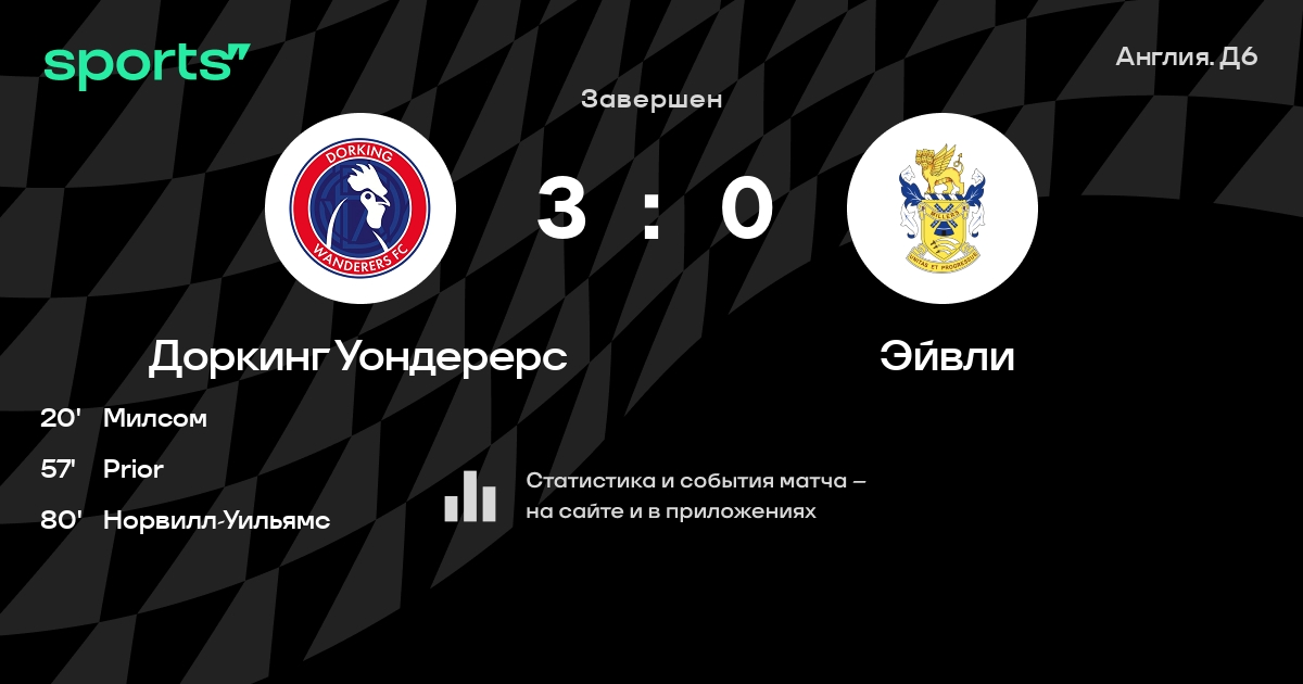 Результат прошлой игры в турнире «Д6. Национальная конференция»: Хорнчерч – Доркинг Уондерерс 0:1. После 28 туров Доркинг Уондерерс набирает 49 очков и занимает 6 место в турнире. Лучший бомбардир команды – A. Rutherford: он забил 12 в 27 матчах. В 7 последних матчах в турнире «Д6. Национальная конференция» Доркинг Уондерерс обязательно забивает. Доркинг Уондерерс больше всех забивает в турнире – 56 в 28. В последних 5 играх Доркинг Уондерерс забивает 7 голов. В последних 5 играх Доркинг Уондерерс пропускает 7 голов.