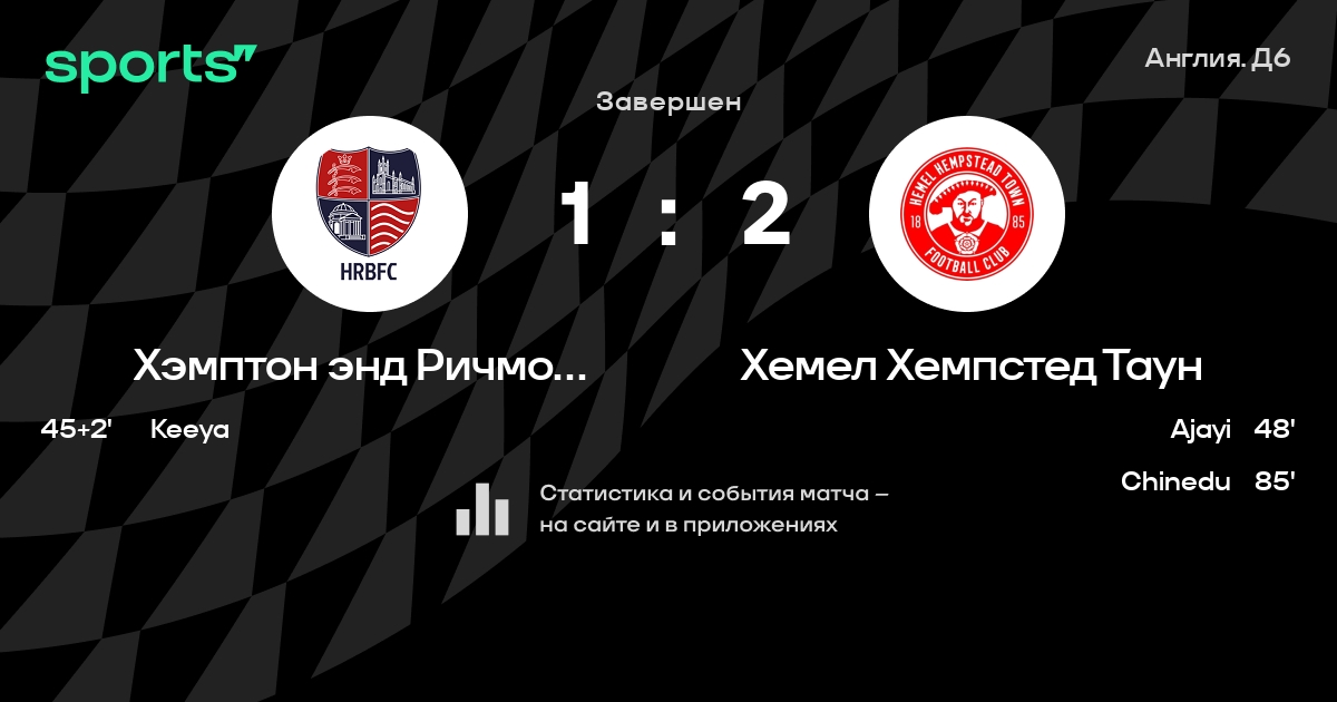 Хэмптон энд Ричмонд – Хемел Хемпстед Таун: Хемел Хемпстед Таун забивает в 7 из 9 последних матчей против этого соперника