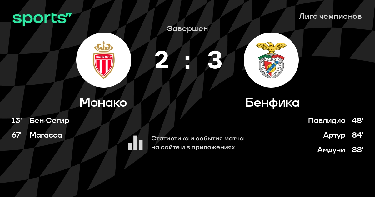 Маецки - Кайо Энрике, Керер, Синго, Вандерсон - Закария, Камара, Головин, Бен-Сегир, Аклиуш - ЭмболоЗапасные: Кен, Льенар, Тезе, Мависса Элеби, Уаттара, Салису, Матазо, Минамино, Магасса, Балогун, Иленикена, Тинкрес