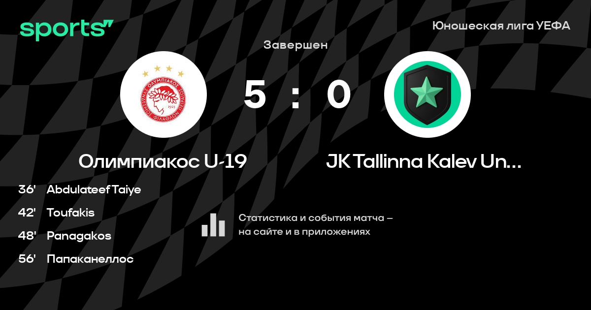 Трансляция Олимпиакос U-19 - JK Tallinna Kalev Under 19