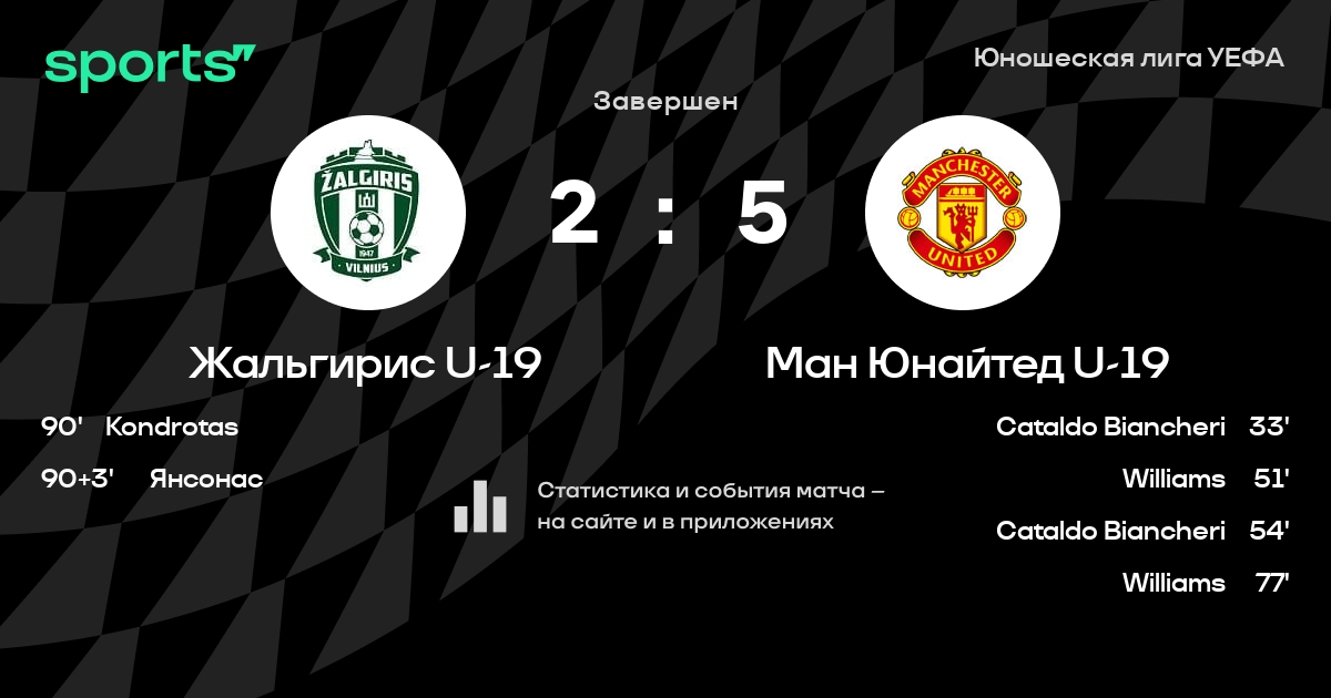 Трансляция Жальгирис U-19 - Ман Юнайтед U-19