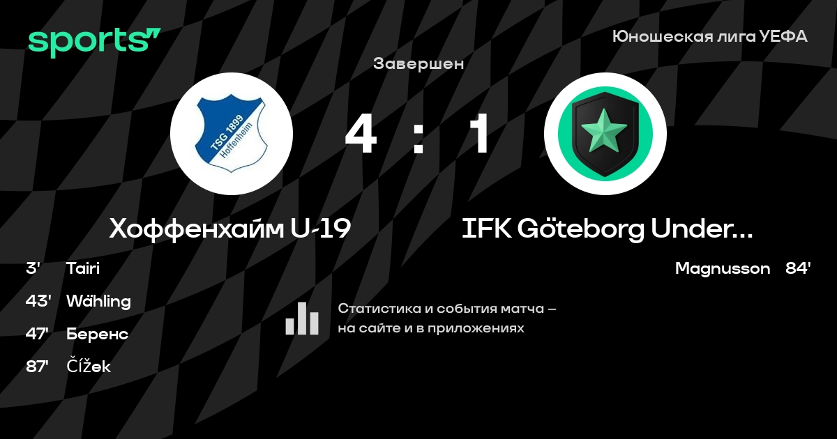 Трансляция Хоффенхайм U-19 - IFK Göteborg Under 19