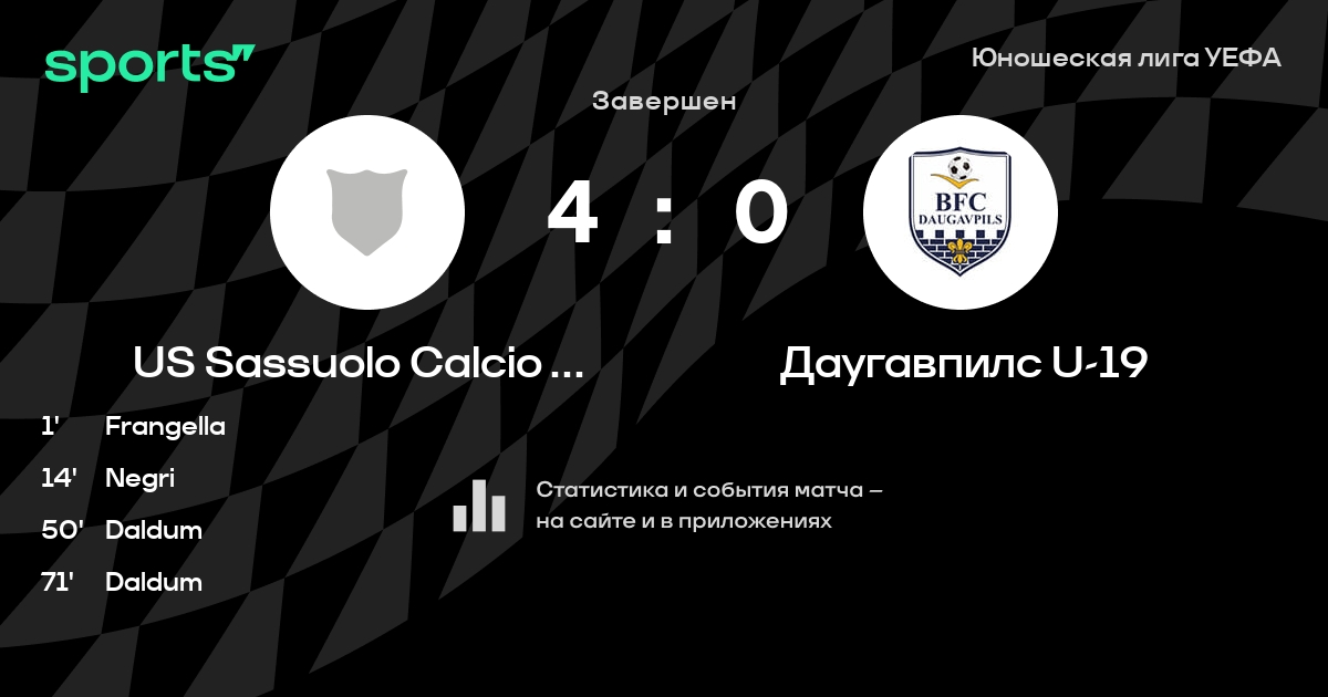 US Sassuolo Calcio U19 – Даугавпилс U-19: коэффициенты