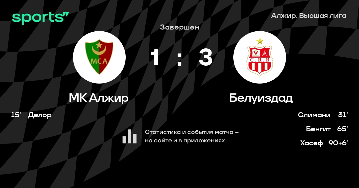 Результат прошлой игры в турнире «Лига 1»: ES Mostaganem – Белуиздад 0:2. После 7 туров Белуиздад набирает 7 очков и занимает 15 место в турнире. Лучший бомбардир команды – Абдеррахман Мезьян: он забил 2 в 11 матчах. В последних 5 играх Белуиздад забивает 4 голов. В последних 5 играх Белуиздад пропускает 4 голов.