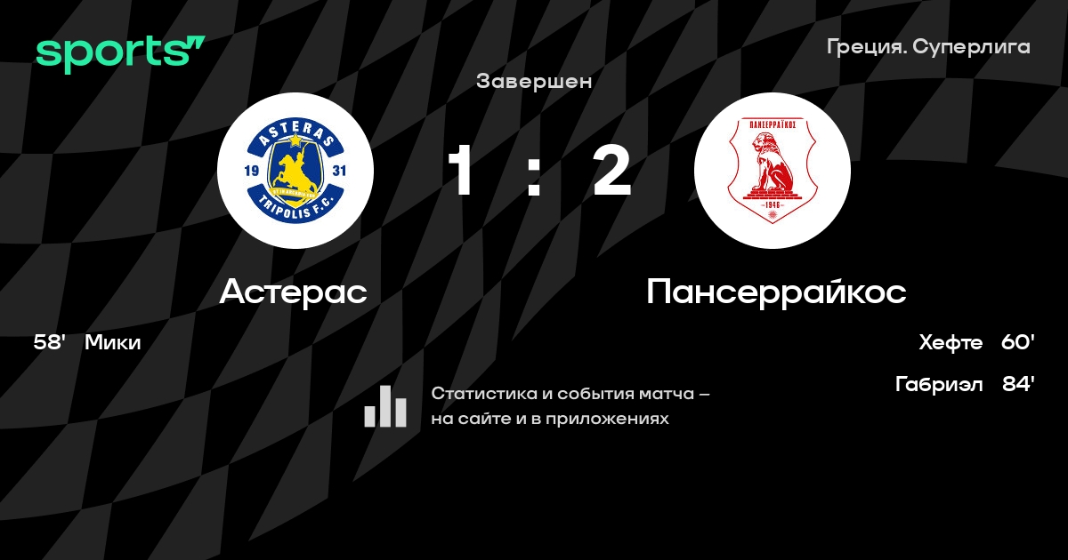 Астерас – Пансеррайкос: Пансеррайкос побеждает в 3 последних очных матчах