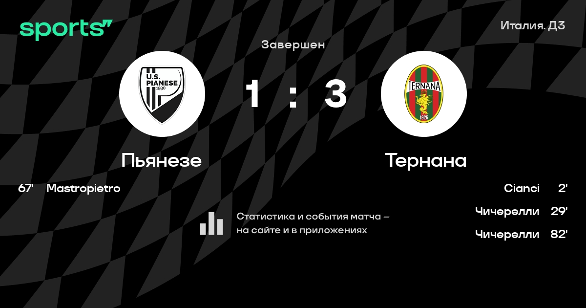 Результат прошлой игры в турнире «Серия С»: Тернана – Milan II 3:0. После 17 туров Тернана набирает 36 очков и занимает 2 место в турнире. Лучший бомбардир команды – Эмануэле Чичерелли: он забил 10 в 16 матчах. Тернана побеждает в 3 последних матчах в рамках турнира «Серия С». Тернана имеет лучшую разницу мячей в турнире – 29. В 3 последних матчах в турнире «Серия С» Тернана обязательно забивает. Тернана больше всех забивает в турнире – 38 в 17. В последних 5 играх Тернана забивает 14 голов. В последних 5 играх Тернана пропускает 2 голов.
