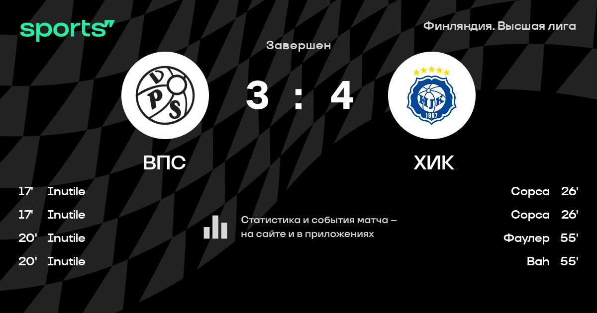 Валлен - Сорса, Райтала, Ояла, Кярккяйнен, Хаухиа - Медо, Ба, Фаулер - Попович, Мякеля