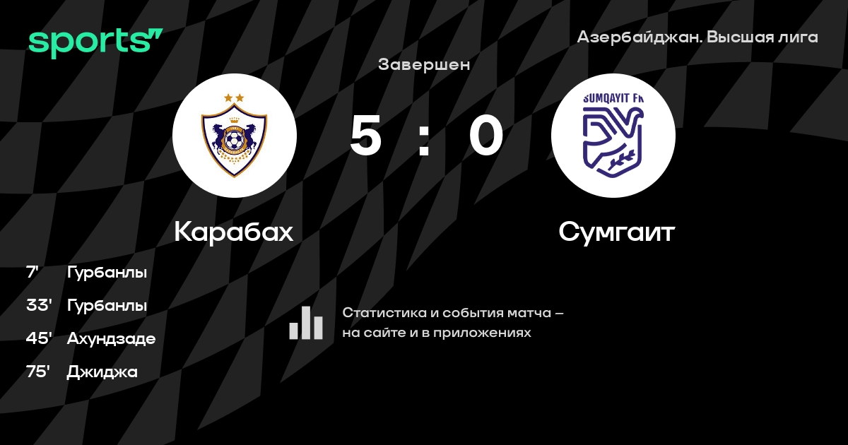 Результат прошлой игры в турнире «Премьер-лига»: Сумгаит – Нефтчи 2:0. После 16 туров Сумгаит набирает 19 очков и занимает 6 место в турнире. Лучший бомбардир команды – Себухи Абдуллазаде: он забил 2 в 18 матчах. В 3 последних матчах в турнире «Премьер-лига» Сумгаит обязательно забивает. В последних 5 играх Сумгаит забивает 8 голов. В последних 5 играх Сумгаит пропускает 7 голов.