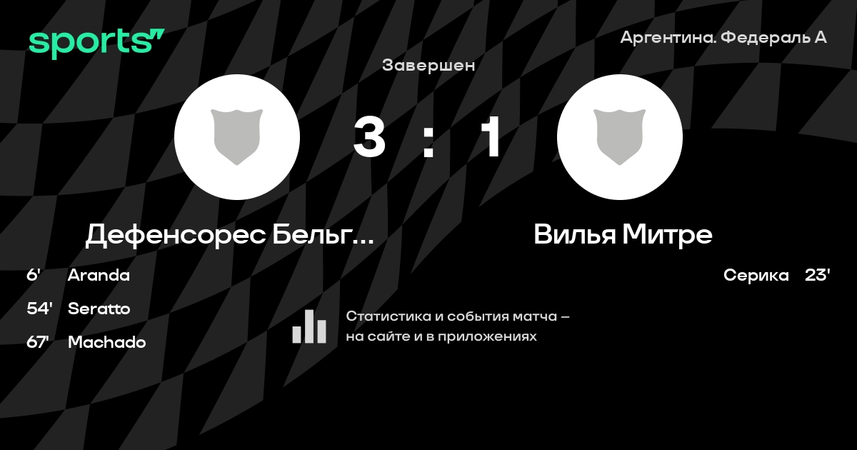 Трансляция Дефенсорес Бельграно ВР - Вилья Митре