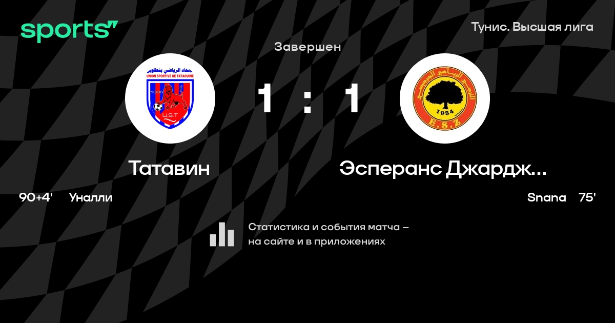 Результат прошлой игры в турнире «Лига 1»: Эсперанс Джарджис – Габес 2:0. После 11 туров Эсперанс Джарджис набирает 23 очков и занимает 4 место в турнире. Лучший бомбардир команды – A. Jabri: он забил 3 в 5 матчах. В последних 5 играх Эсперанс Джарджис забивает 7 голов. В последних 5 играх Эсперанс Джарджис пропускает 4 голов.
