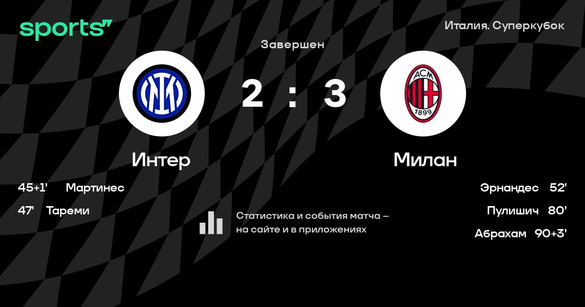 Результат прошлой игры в турнире «Суперкубок»: Интер – Аталанта 2:0. В последних 5 играх Интер забивает 15 голов. В последних 5 играх Интер пропускает 0 голов.