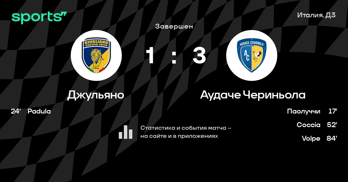 Руссо - Solcia, Andrea Valdesi, Caldore, Sulaiman Oyewale - Luciano Peluso, Celeghin, Francesco Pio Vallarelli - Балде, Michele Masala, Cristian PadulaЗапасные: Барози, Анакура, Минелли, Scaravilli, Nuredini, Lleshi, Genovese, D'Agostino, Де Паоли, Njambe, Дель Соле