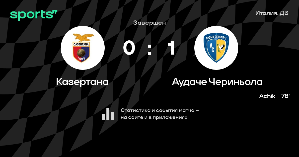Результат прошлой игры в турнире «Серия С»: Таранто – Казертана 0:6. После 25 туров Казертана набирает 27 очков и занимает 17 место в турнире. Лучший бомбардир команды – Мирко Карретта: он забил 3 в 21 матчах. Казертана не проигрывает в 3 последних матчах в рамках турнира «Серия С». В 3 последних матчах в турнире «Серия С» Казертана обязательно забивает. В последних 5 играх Казертана забивает 9 голов. В последних 5 играх Казертана пропускает 4 голов.