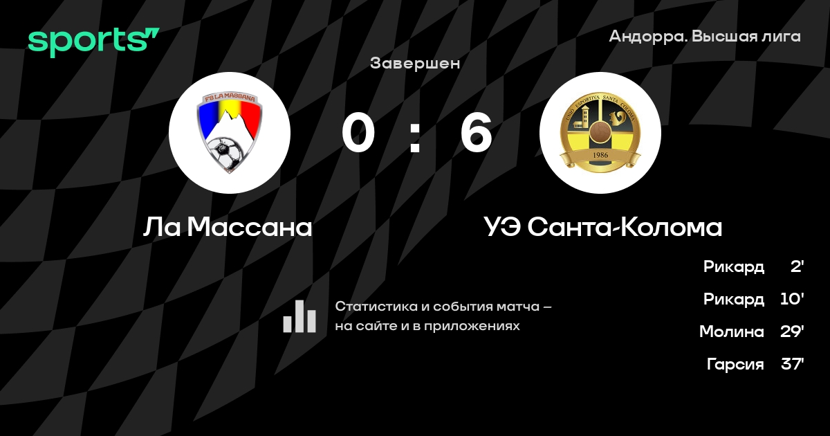Результат прошлой игры в турнире «Примера»: Пас-де-ла-Каса – Ла Массана 4:0. После 15 туров Ла Массана набирает 5 очков и занимает 9 место в турнире. Лучший бомбардир команды – Виктор Бернат: он забил 2 в 8 матчах. Ла Массана не может выиграть в 4 последних матчах в рамках турнира «Примера». В 4 последних матчах в турнире «Примера» Ла Массана обязательно забивает. В последних 5 играх Ла Массана забивает 3 голов. В последних 5 играх Ла Массана пропускает 17 голов.