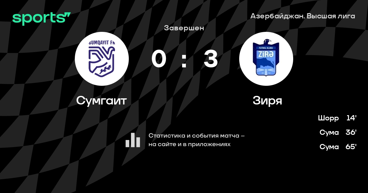 Сумгаит – Зиря: Зиря не пропускает в 0 из 8 последних матчей против этого соперника