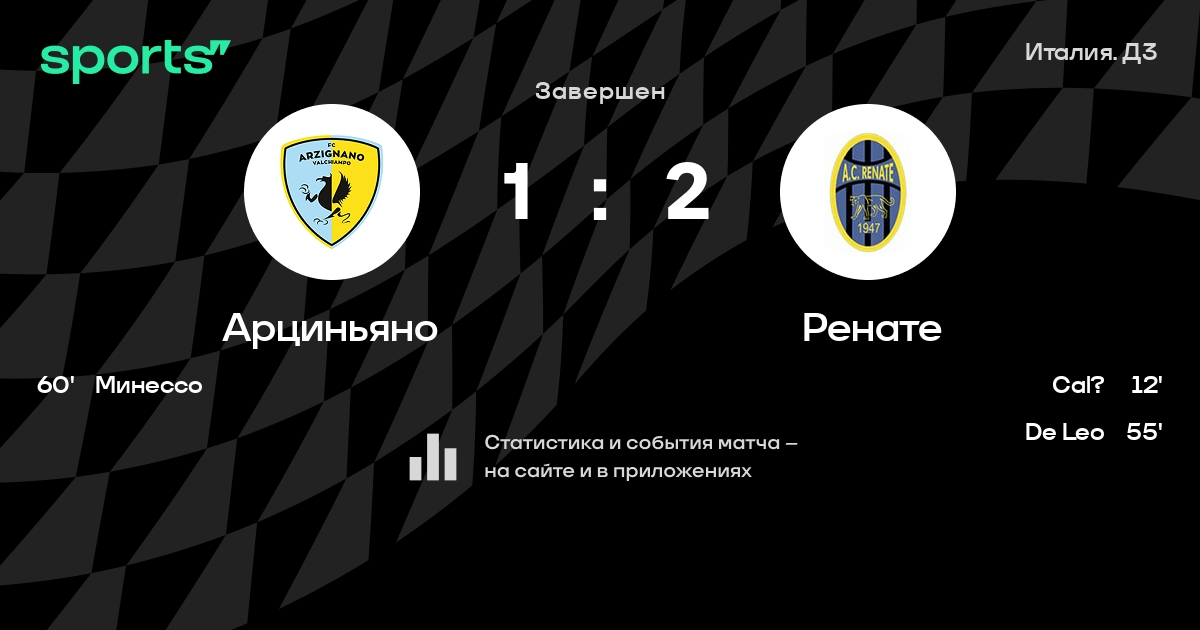 Арциньяно – Ренате: Ренате не проигрывает в 5 из 6 последних матчей против этого соперника