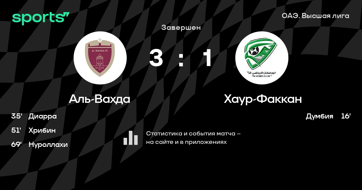 Результат прошлой игры в турнире «Высшая лига»: Аджман – Аль-Вахда 4:3. После 14 туров Аль-Вахда набирает 22 очков и занимает 6 место в турнире. Лучший бомбардир команды – Омар Хрибин: он забил 13 в 16 матчах. Аль-Вахда не может выиграть в 3 последних матчах в рамках турнира «Высшая лига». В последних 5 играх Аль-Вахда забивает 9 голов. В последних 5 играх Аль-Вахда пропускает 11 голов.
