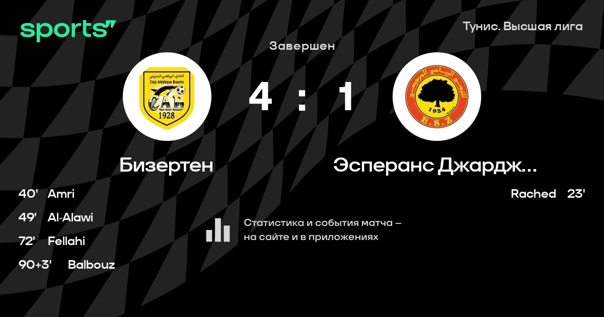 Бизертен – Эсперанс Джарджис: Эсперанс Джарджис не проигрывает в 10 из 12 последних матчей против этого соперника