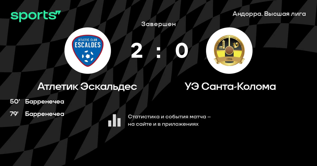 Атлетик Эскальдес – УЭ Санта-Колома: УЭ Санта-Колома не пропускает в 4 последних матчах против этого соперника