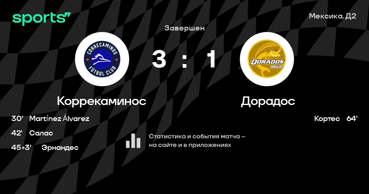 Коррекаминос – Дорадос: Дорадос не проигрывает в 5 из 7 последних матчей против этого соперника в гостях