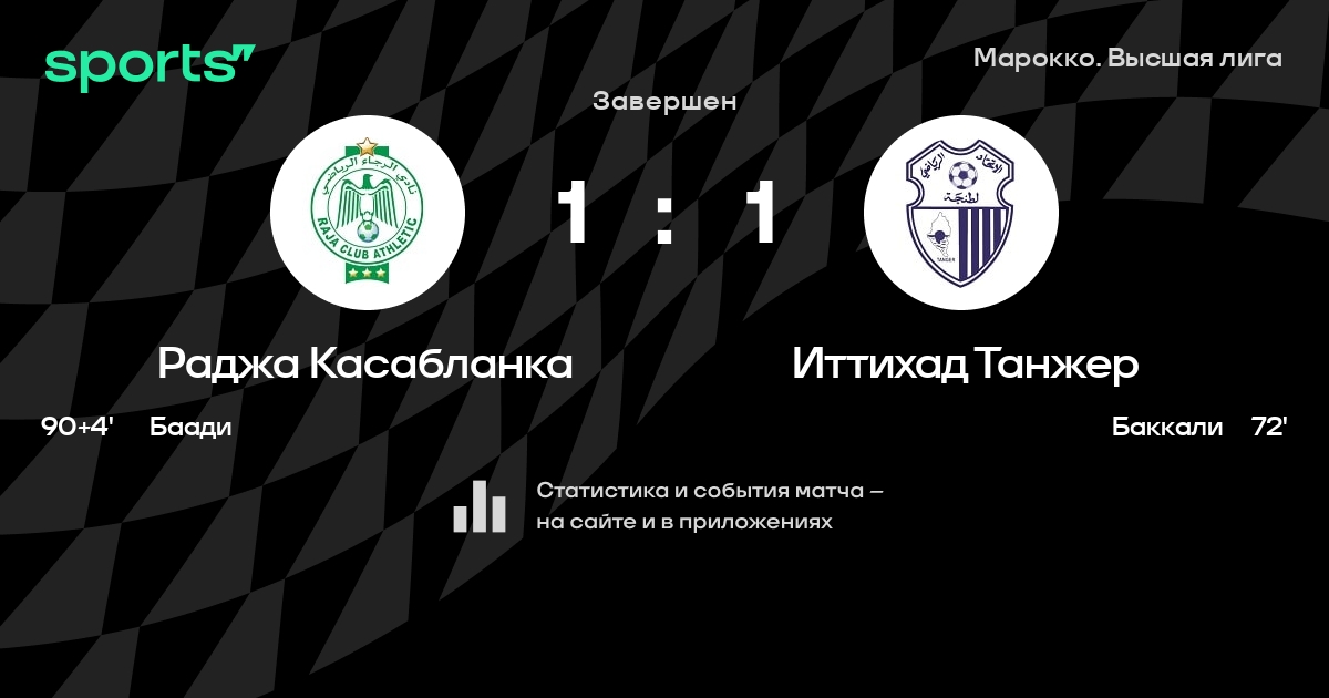 Результат прошлой игры в турнире «Высшая лига»: Иттихад Танжер – ФЮС 1:0. После 17 туров Иттихад Танжер набирает 22 очков и занимает 10 место в турнире. Лучший бомбардир команды – A. El Harrak: он забил 6 в 16 матчах. Иттихад Танжер не проигрывает в 3 последних матчах в рамках турнира «Высшая лига». В 3 последних матчах в турнире «Высшая лига» Иттихад Танжер обязательно забивает. В последних 5 играх Иттихад Танжер забивает 4 голов. В последних 5 играх Иттихад Танжер пропускает 3 голов.