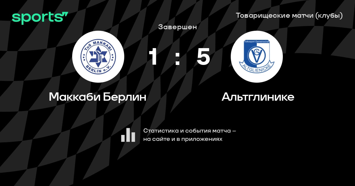 Результат прошлой игры в турнире «Товарищеские матчи (клубы)»: Tasmania Berlin – Альтглинике 1:4. Альтглинике не проигрывает в 4 последних матчах в рамках турнира «Товарищеские матчи (клубы)». В 4 последних матчах в турнире «Товарищеские матчи (клубы)» Альтглинике обязательно забивает. В последних 5 играх Альтглинике забивает 6 голов. В последних 5 играх Альтглинике пропускает 5 голов.