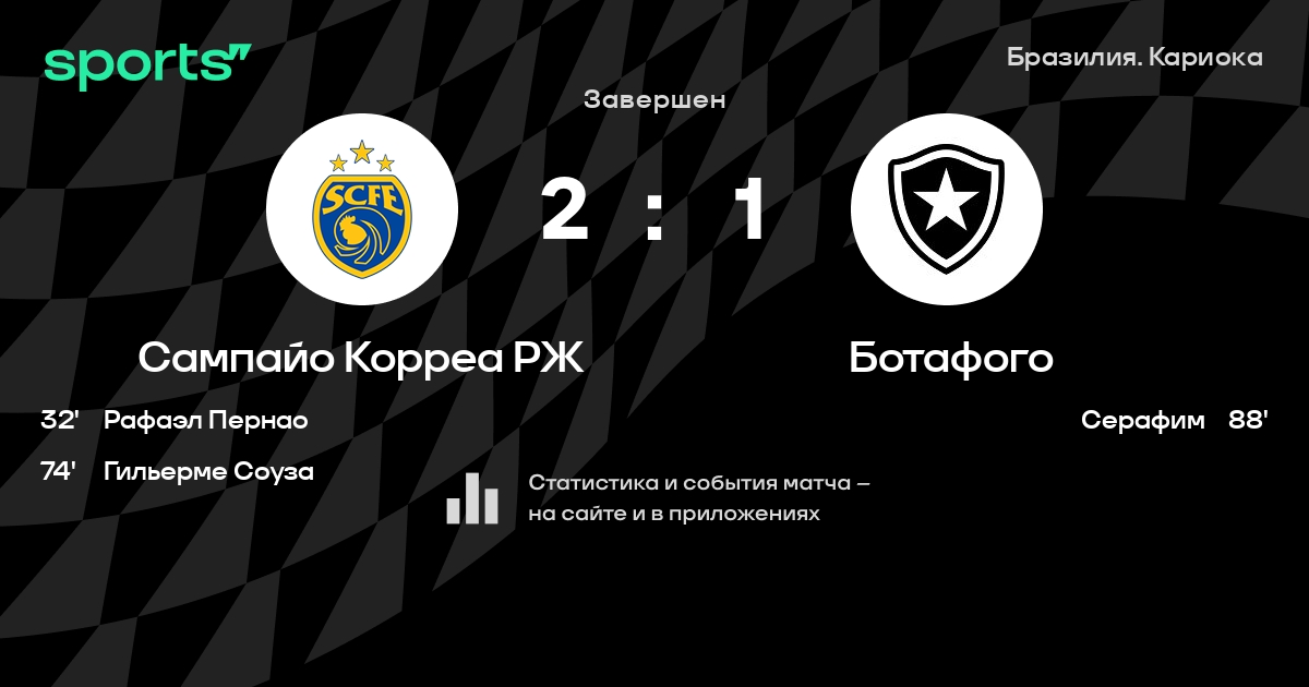 Результат прошлой игры в турнире «Лига Кариока»: Нова-Игуасу – Sampaio Corrêa RJ 1:0. Sampaio Corrêa RJ не может выиграть в 4 последних матчах в рамках турнира «Лига Кариока». В последних 5 играх Sampaio Corrêa RJ забивает 6 голов. В последних 5 играх Sampaio Corrêa RJ пропускает 5 голов.