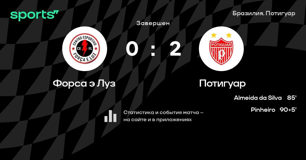 Результат прошлой игры в турнире «Лига Потигуар»: Laguna – Форса э Луз 1:1. Форса э Луз не может выиграть в 7 последних матчах в рамках турнира «Лига Потигуар». В 8 последних матчах в турнире «Лига Потигуар» Форса э Луз обязательно забивает. Форса э Луз пропускает в 12 последних матчах в турнире «Лига Потигуар». В последних 5 играх Форса э Луз забивает 4 голов. В последних 5 играх Форса э Луз пропускает 12 голов.