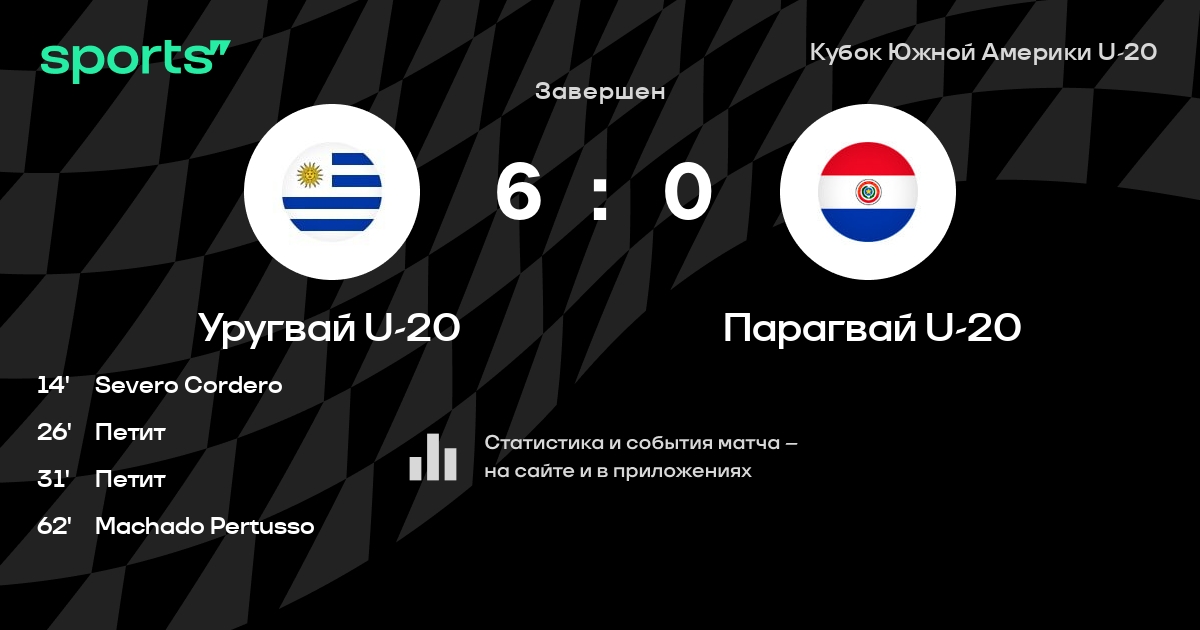 Kevin Alexander Martínez Inzaurralde - Patricio Pacífico Domínguez, Камехо, Монтеро, Lucas Agazzi Galeano - Эльгера, Mauro Zalazar Martínez, Петит - Лавега, Renzo Neri Machado Pertusso, Jorge Alejandro Severo CorderoЗапасные: Bonilla González, Ortíz Ferreira, Calione Fuentes, González Muslera, Ramos Invernizzi, Barbas Díaz, Calcagno Gil, Cuello Gutiérrez, Peralta Píriz, Pino García, Albarracín Basil, Crucci Picardo