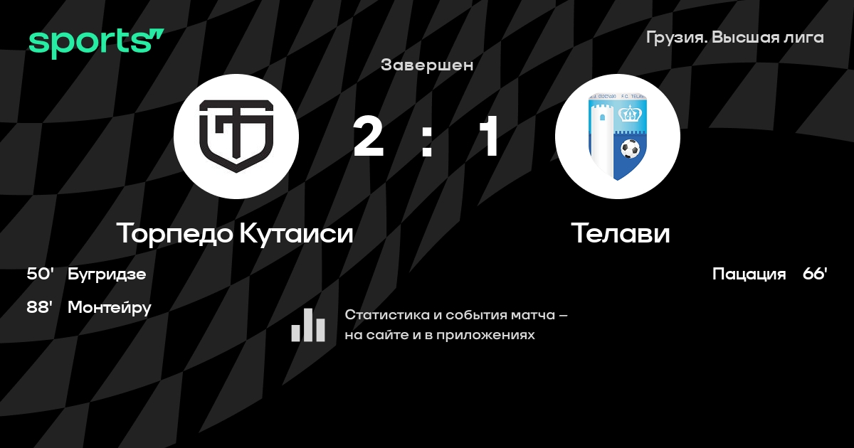 | 3 | Торпедо Кутаиси | 36 | 16 | 12 | 8 | 55 | 37 | +18 | 60 | ||