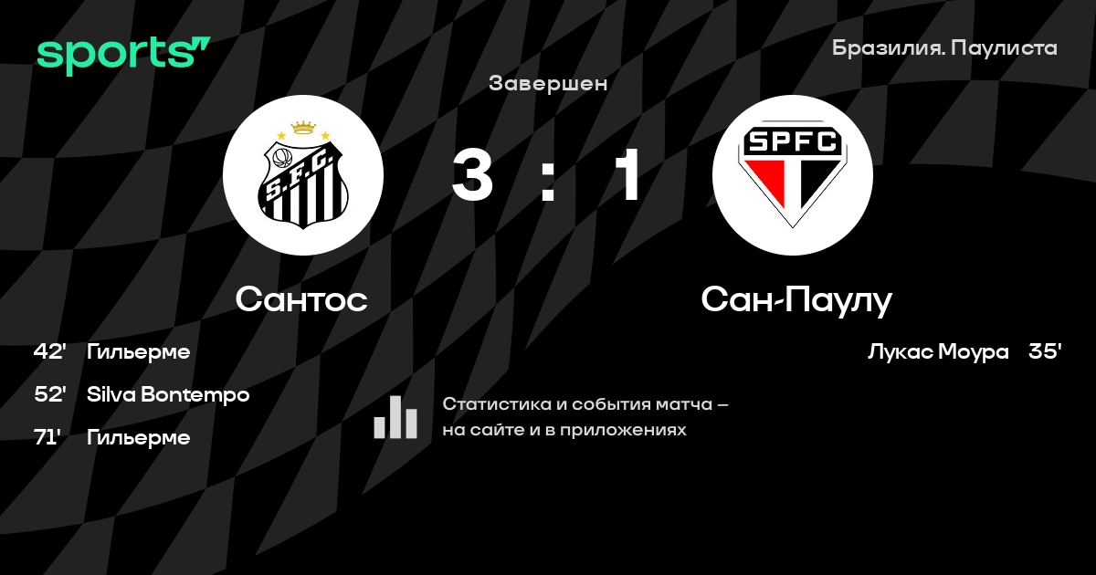 Рафаэл - Диас, Сабино, Арболеда, Игор Винисиус - Майя, Алиссон, Оскар, Лусиано, Лукас Моура - КальериЗапасные: Жандрей, Феррареси, Патрик, Руан, Бобадилья, Родригиньо, Маркос Антонио, Кармо, Андре Силва, Rodrigues dos Santos Silva, Эрик, Алдемир Феррейра